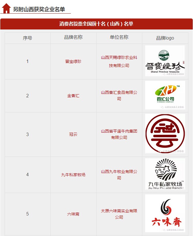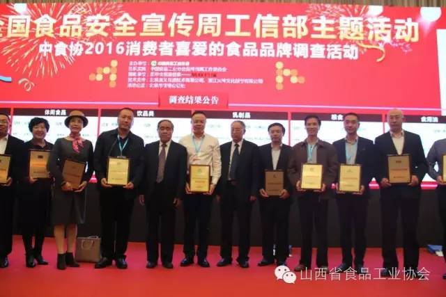 相信通過(guò)前一段時(shí)間的介紹,大家對(duì)于“中食協(xié)2016消費(fèi)者喜愛(ài)的食品品牌調(diào)查活動(dòng)”已經(jīng)很熟悉了。在山西省食品工業(yè)協(xié)會(huì)的大力推薦下,山西省20家企業(yè)分別登上了由消費(fèi)者自發(fā)投票產(chǎn)生的全國(guó)前十名,以及山西十大區(qū)域品牌的前十名名單。日前已全部聚集上海,并于今天參加在上海舉辦的“2016中國(guó)(國(guó)際)食品產(chǎn)業(yè)發(fā)展論壇”的頒獎(jiǎng)儀式。值得一提的是山西省食品工業(yè)協(xié)會(huì)榮獲本次活動(dòng)“優(yōu)秀組織獎(jiǎng)”
